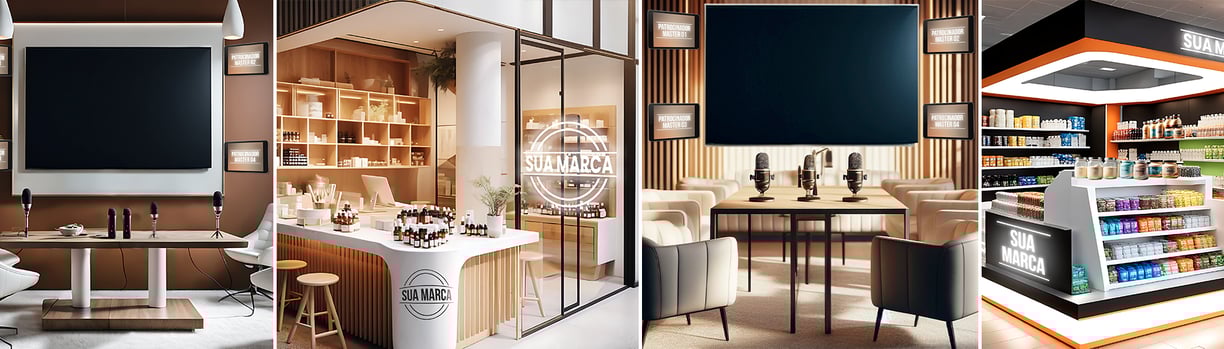 - 3 Displays de 50cmX40cm em três paredes diferentes no Place assinado – sua marca tendo destaque de visibilidade onde quer que as câmeras estejam posicionados no Place durante as atividades ali realizadas pelos hóspedes da Mansão da Beleza.