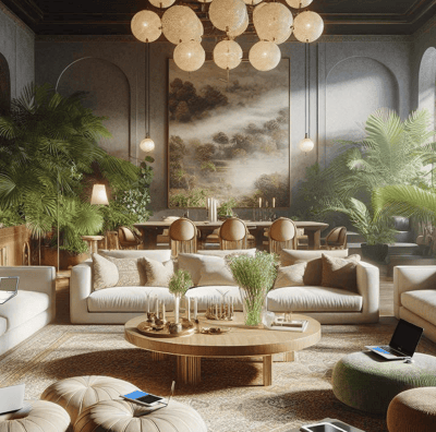 Estes ambientes foram criados com ajuda da Inteligência Artificial e refletem muito do conceito que está sendo trabalhado para os ambiente dA Mansão da Beleza.