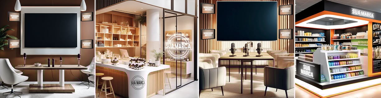 - 1 Display de aproximadamente 30cmX25cm (tamanho de um iPad) nas Laterais da TV de Tela Grande Durante Todos os Podcasts – displays fixos com exposição permanente durante todo o podcast – apenas 4 displays (4 PATROCINADORES MASTER) - cada display em um dos cantos da TV.